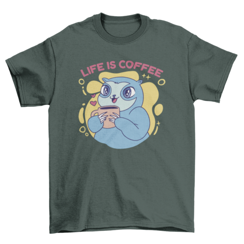 Sloth drinking Coffee with quote Life is coffee t-shirt