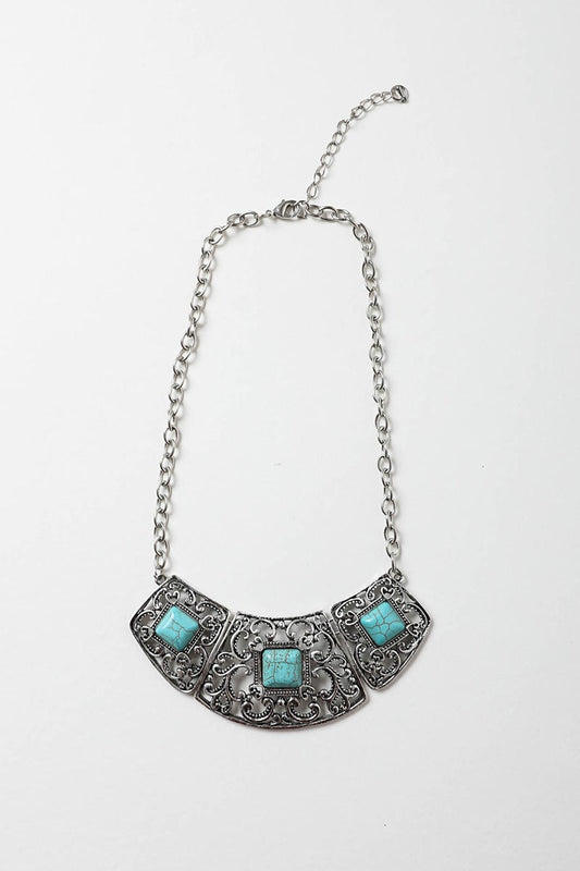 Blue Cubic Zirconia Eiffel Towel Pav'e Necklace in Rhodium Plating