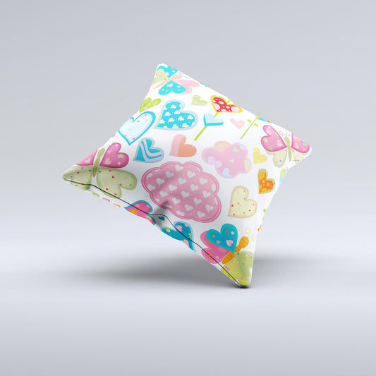 Fun Colored Love-Heart Treats Ink-Fuzed Decorative Throw Pillow