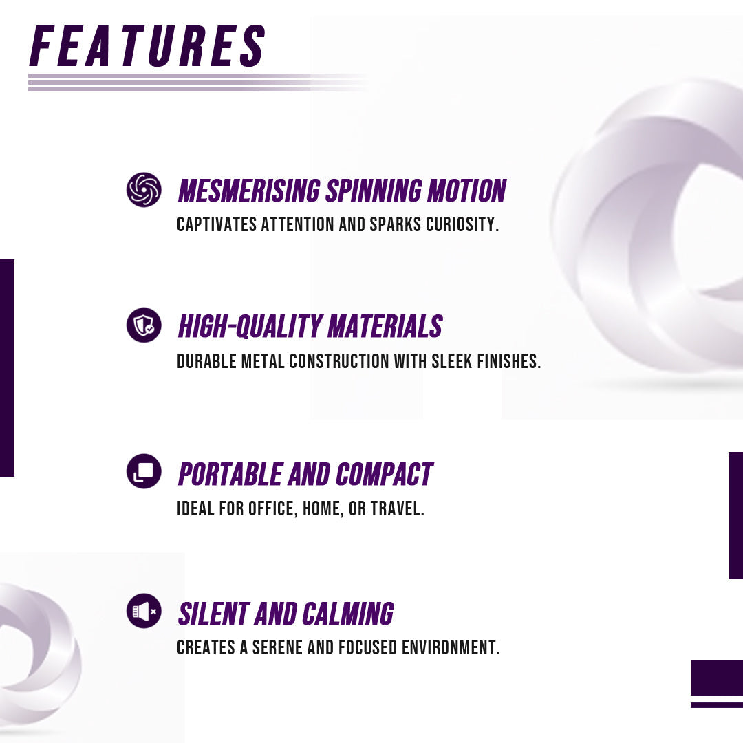 - Silent and Portable: The Kinetic Spinning Desk Toy is designed to spin silently so you won't disturb anyone around you. It's also small and lightweight, making it easy to take wherever you go.